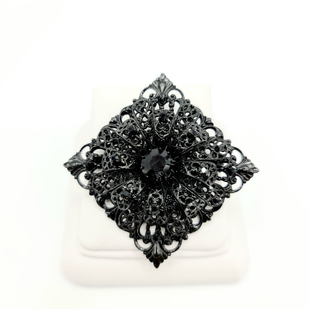 Brož Filigránová Krajka černá, je vyrobena ze slitiny bižuterních kovů. Krajka je osázena crystaly Preciosa jet, díky kterým působí nadčasově. Tato brož byla navržena a vyrobena jabloneckými šperkařkami. Jedná se o ryze o český šperk.