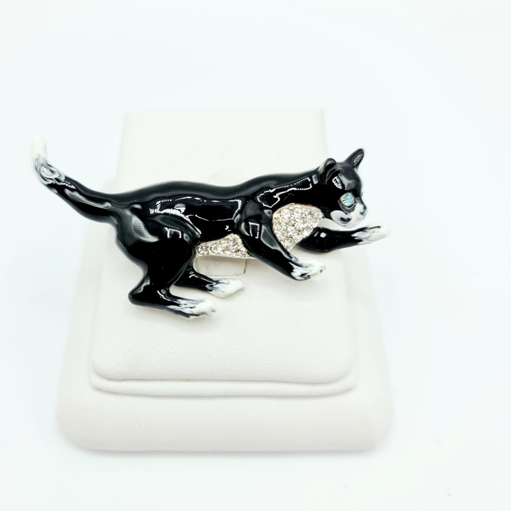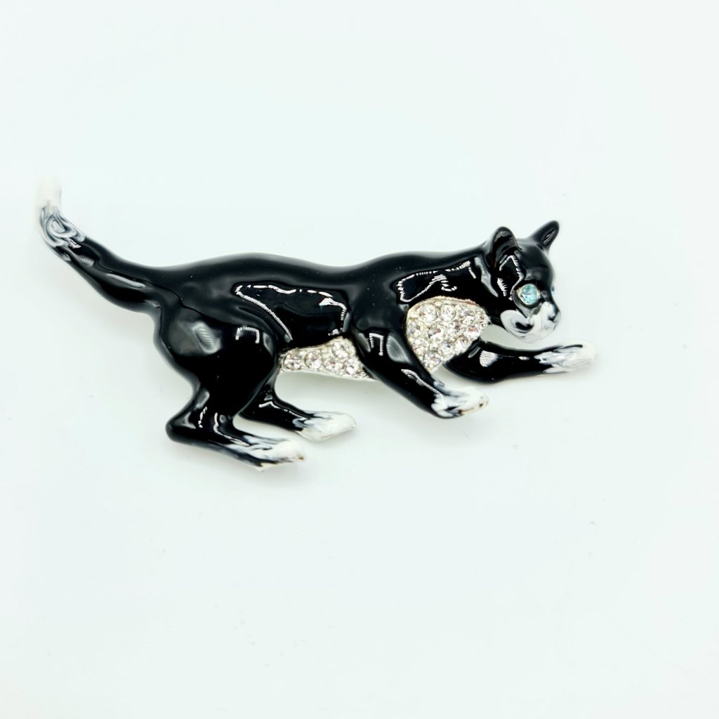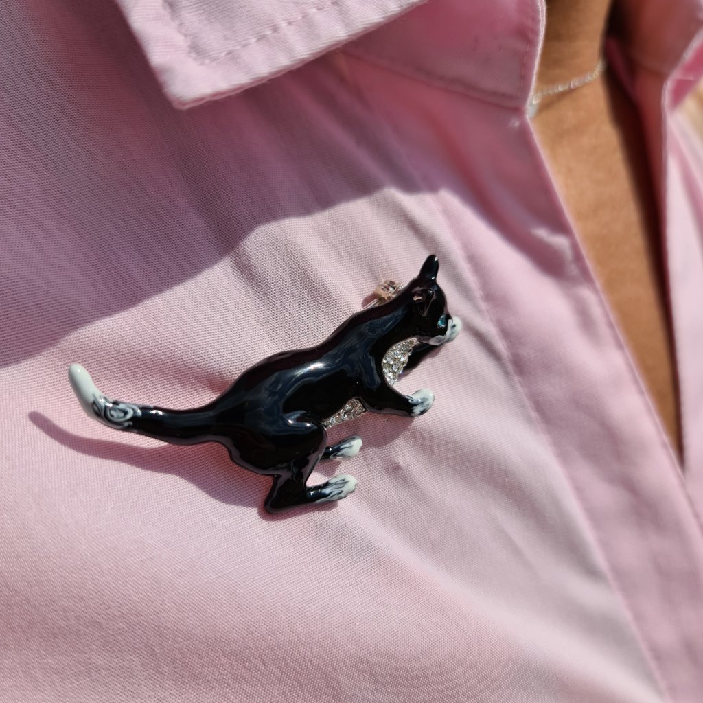 Brož Kočka Černá s bílými flíčky
