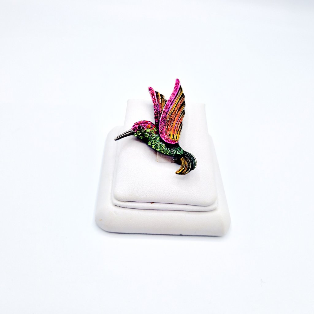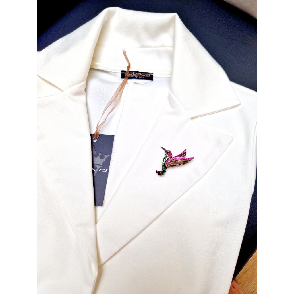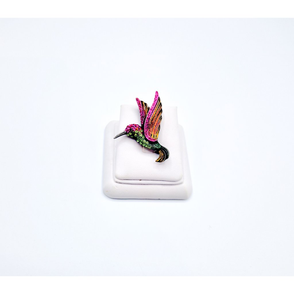 Brož ve tvaru kolibříka je elegantní a výrazný šperk, který může přidat nádech originality a elegance jakémukoli outfitu. Kolibřík jako motiv je často spojován s krásou, lehkostí a svobodou, což z něj činí oblíbený symbol v designu šperků.