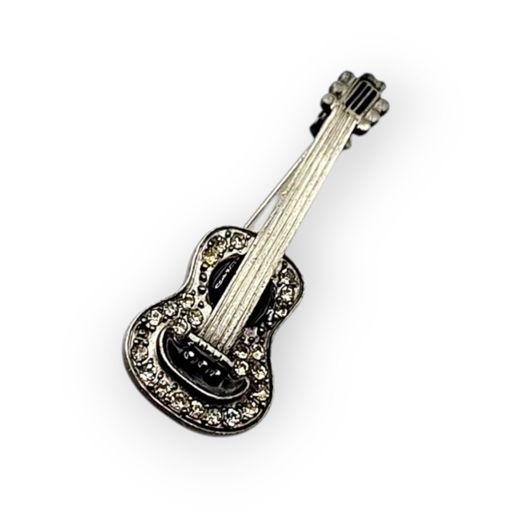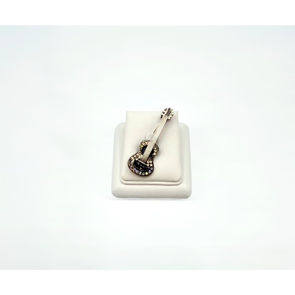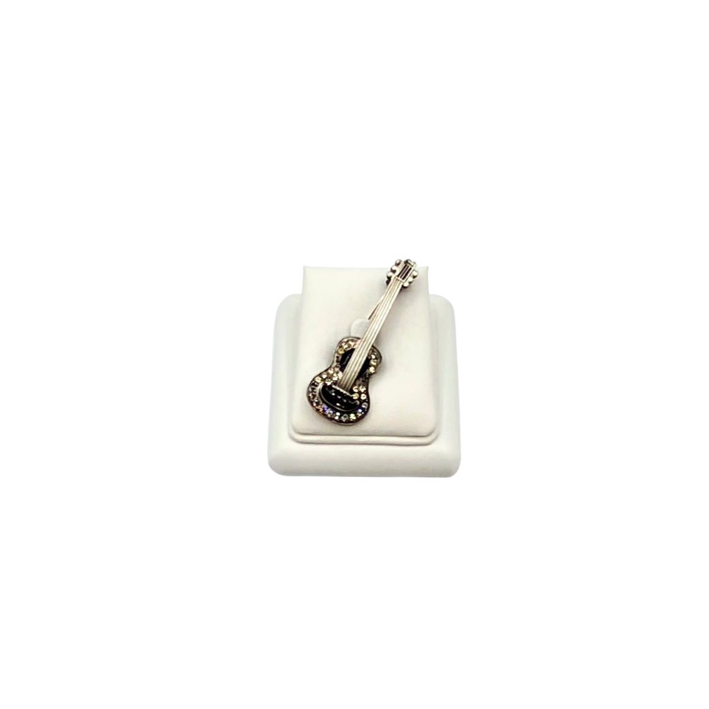 Stylová brož ve tvaru kytary ve starostříbrném provedení je ideálním doplňkem pro milovníky hudby, rockového stylu nebo originálních šperků. Je vyrobena z kovové slitiny s povrchovou úpravou ve vintage starostříbrném odstínu, který dodává šperku decentní patinu a elegantní vzhled.