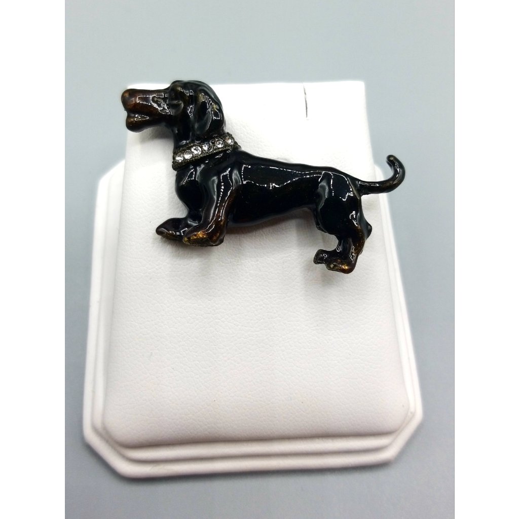Brož ve tvaru pejska je ručně vyrobena a malovaná. Obojek je osázen kamínky. Brož se dá připnout nejen na oblečení, ale i na kabelku či peněženku.