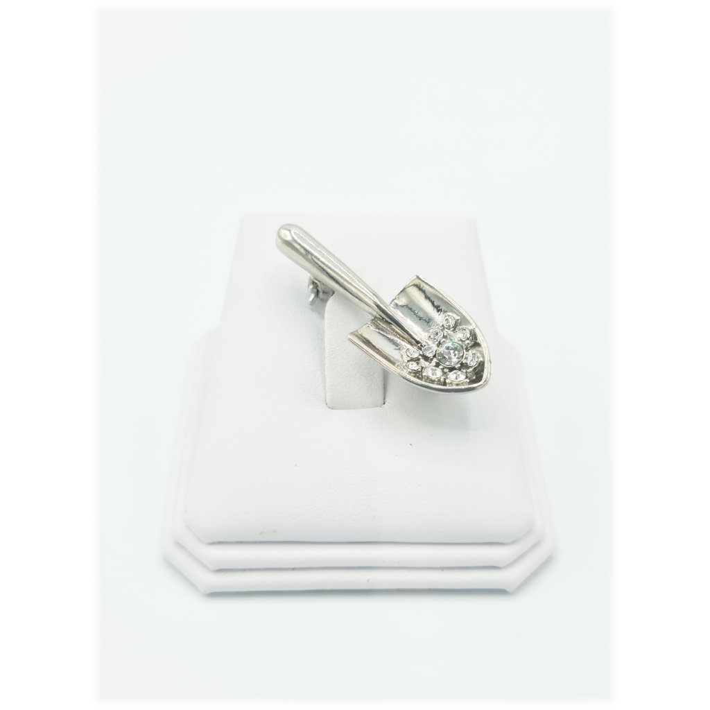 Brož je vyrobená ze směsi bižuterních kovů s povrchovou úpravou rhodium. Osázena Swarovski kameny Crystal. Krásná ozdoba na límeček od košile nebo na náprsní kapsičku.