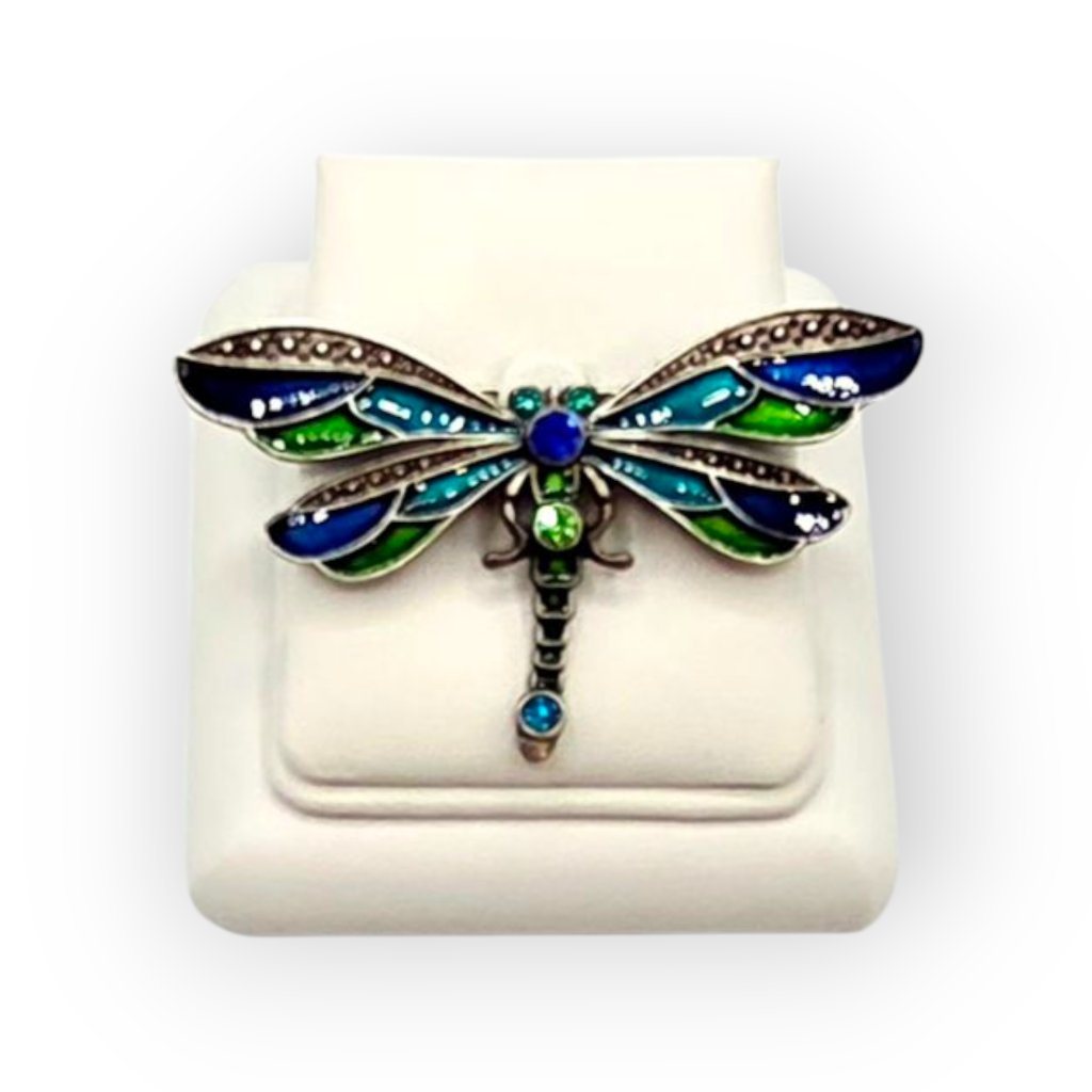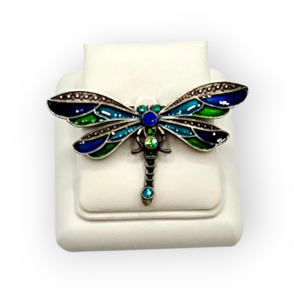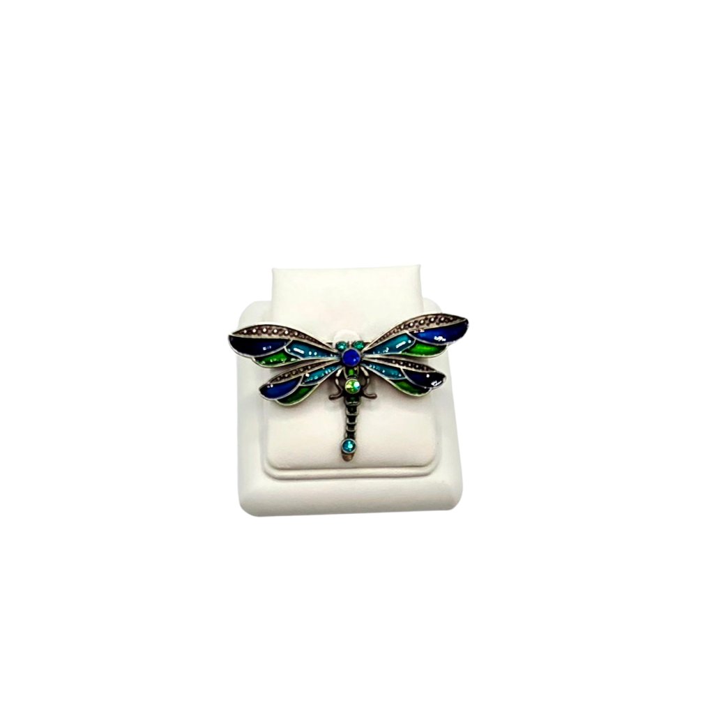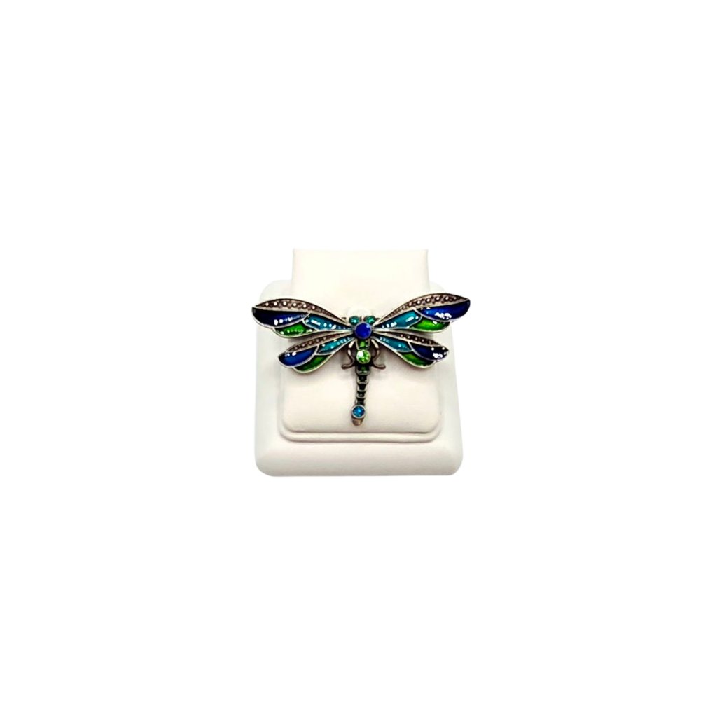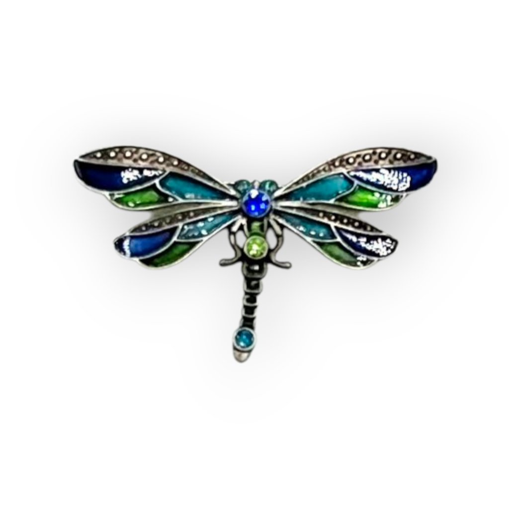 Elegantní brož ve tvaru vážky zaujme svým propracovaným designem a barevnou kombinací modrých a zelených odstínů. Je osázena třpytivými broušenými kameny, které krásně odrážejí světlo a dodávají celkovému vzhledu šperku luxusní nádech. Ideální jako módní doplněk ke kabátu, halence nebo šatům. Tato brož se hodí jak pro slavnostní příležitosti, tak i pro každodenní nošení a skvěle podtrhne váš osobní styl.