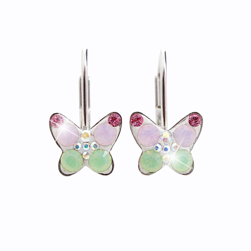 Dětské stříbrné náušnice Motýlci Swarovski multi