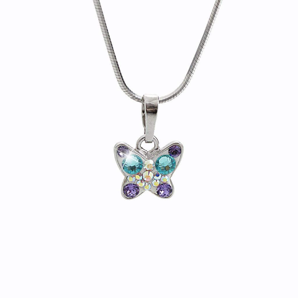 Dětský stříbrný náhrdelník Motýlek Swarovski purple