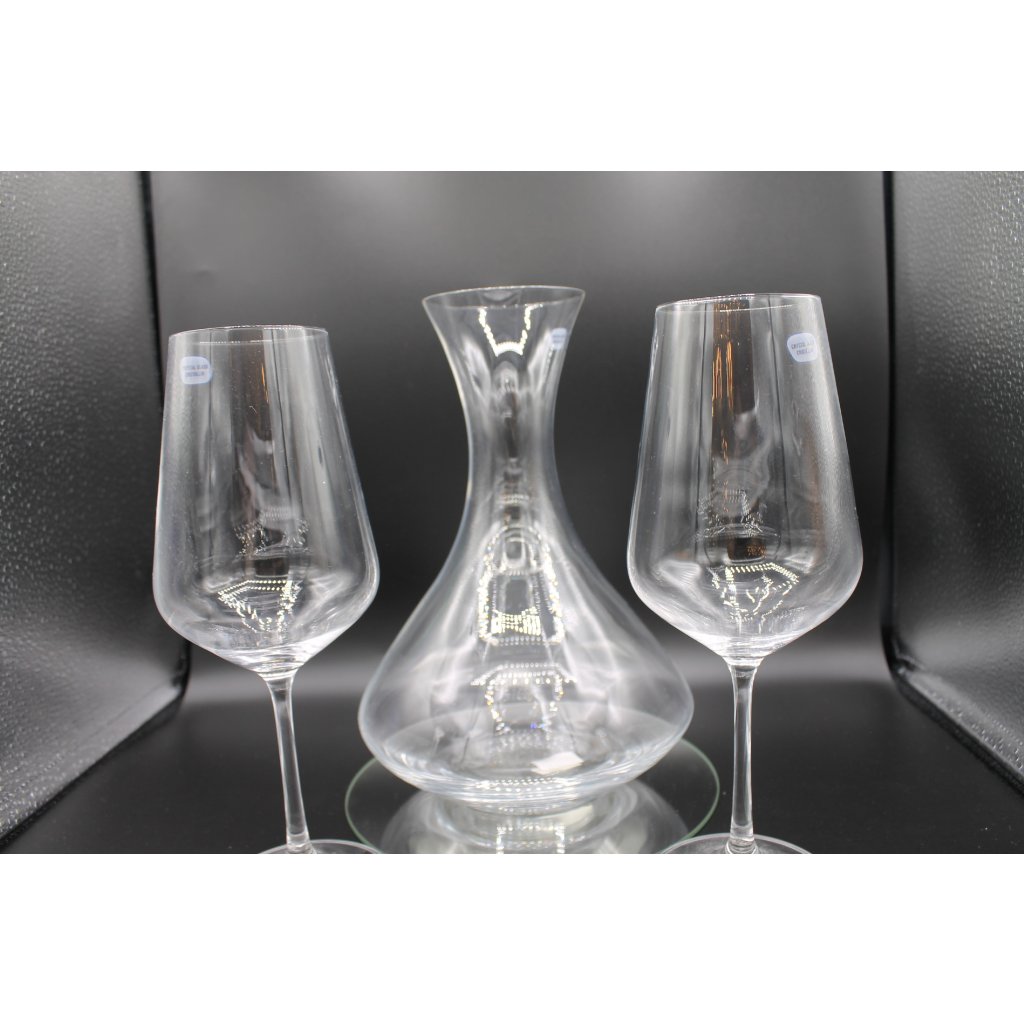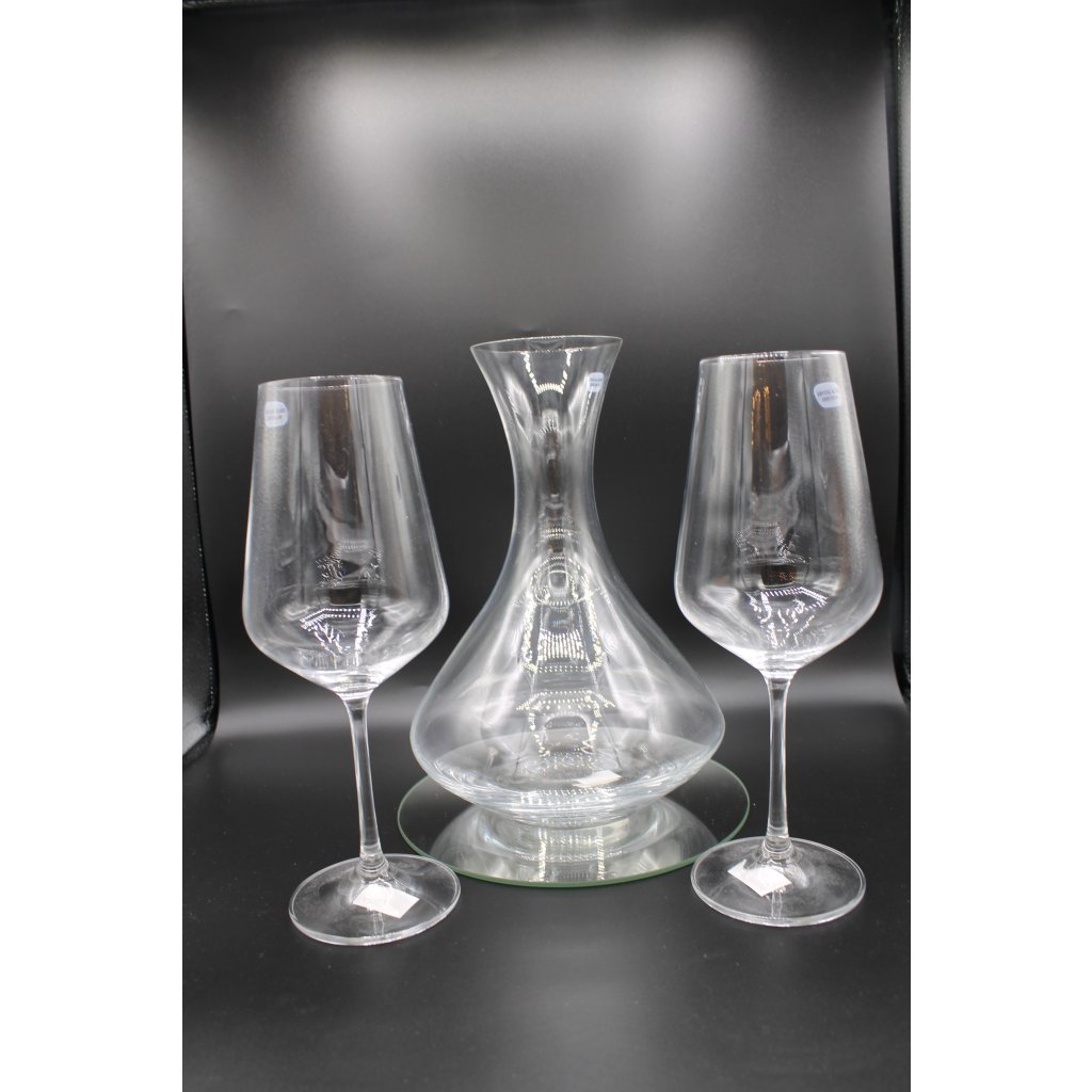 Český skleněný set karafy s dvěma skleničkami na váš stůl, který zpříjemní posezení s vašimi blízkými u vašeho oblíbeného vína.
