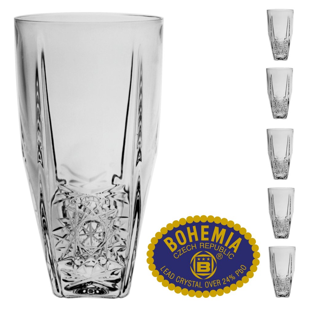 Exkluzivní sklenice na vodu vyrobené z pravého českého olovnatého křišťálu, což dosvědčuje i ochranná známka Bohemia Crystal 24%Pbo. Jedná se o tradiční českou sklářskou výrobu v modením designu.