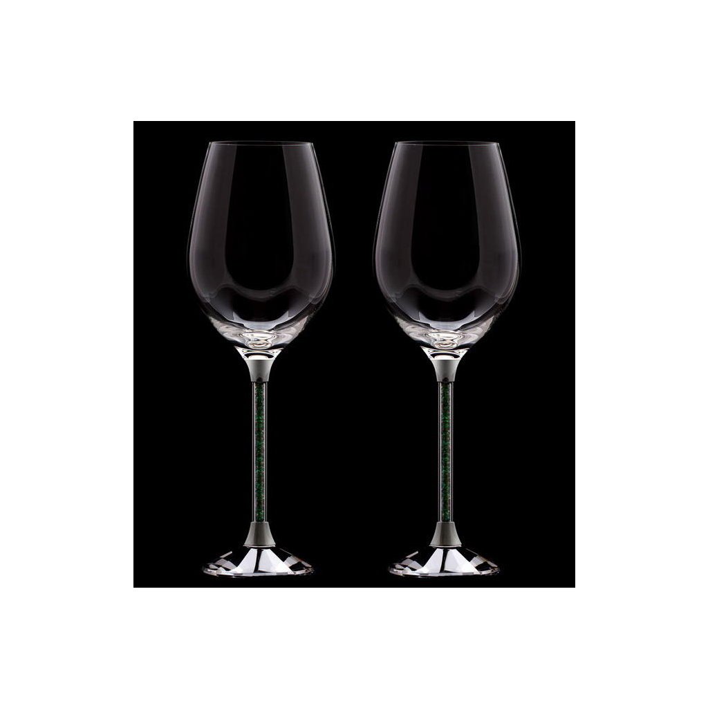 Křišťálové sklenice víno 2ks zelené krystalky SW01GR