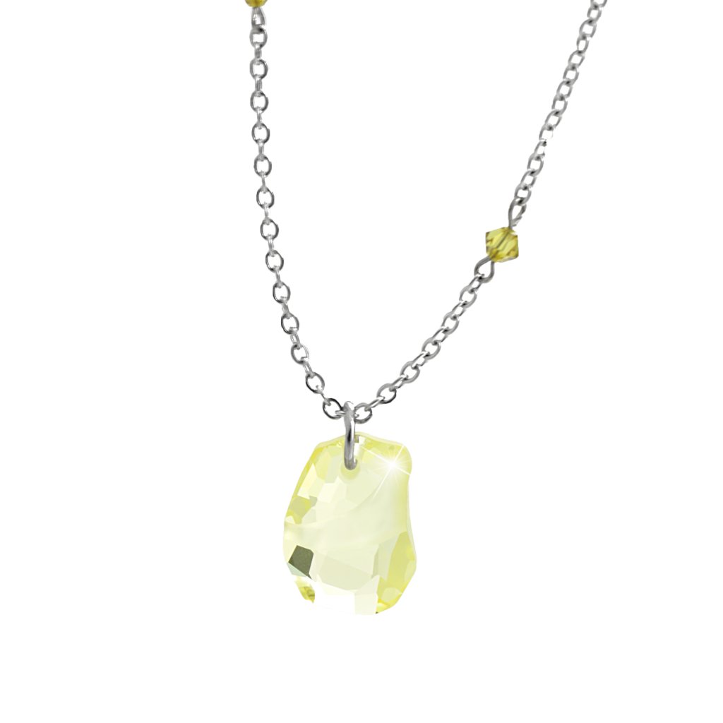 Jednoduchý náhrdelník s krystalem Swarovski v neobyčejné a veselé citrónové barvě bude Vaším krásným letním doplňkem. Náhrdelník tvoří řetízek se dvěma malými kamínky Swarovski a přívěšek s krystalkem Swarovski.