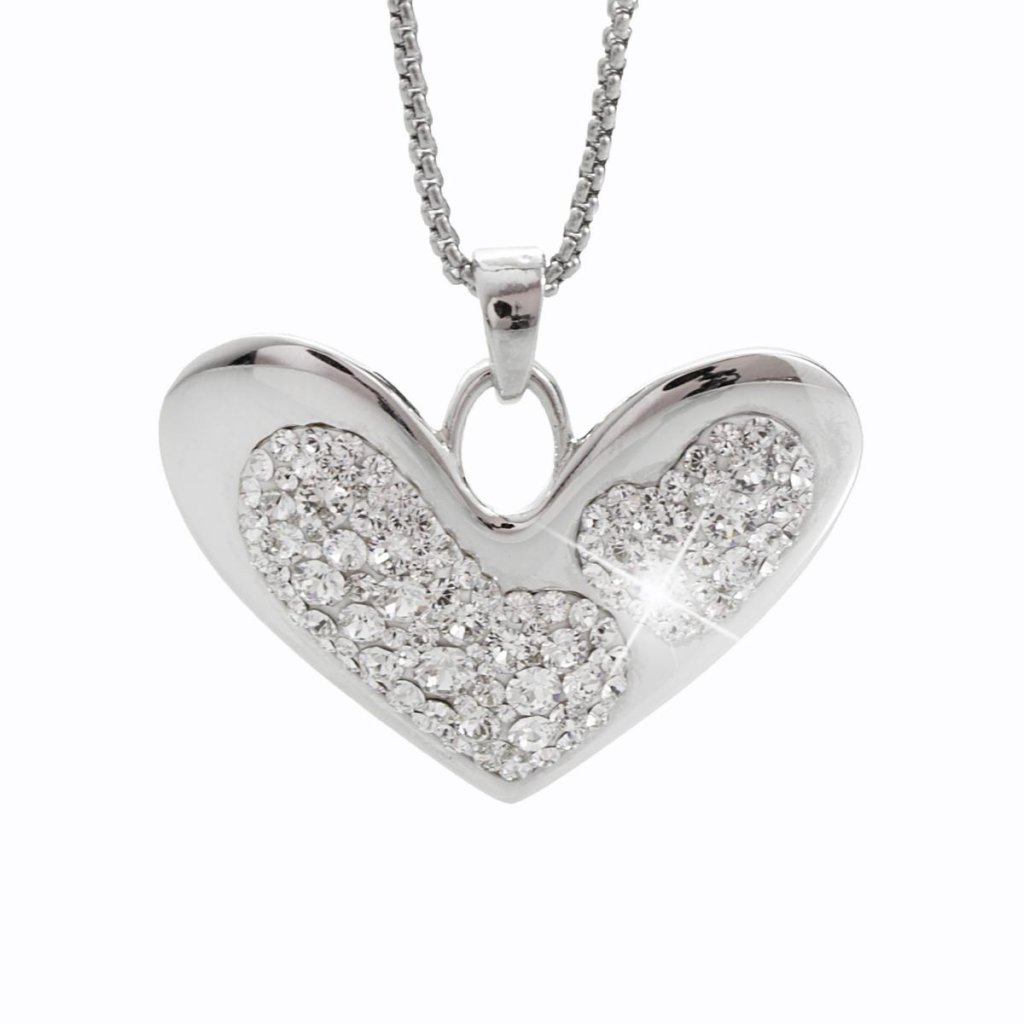 Náhrdelník v designu velkého srdce, zdobeného kameny Swarovski® v barvě Crystal (čirá).