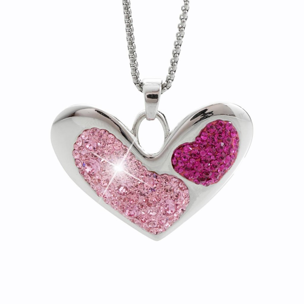 Náhrdelník v designu velkého srdce, zdobeného kameny Swarovski® v barvě Rose (růžová).