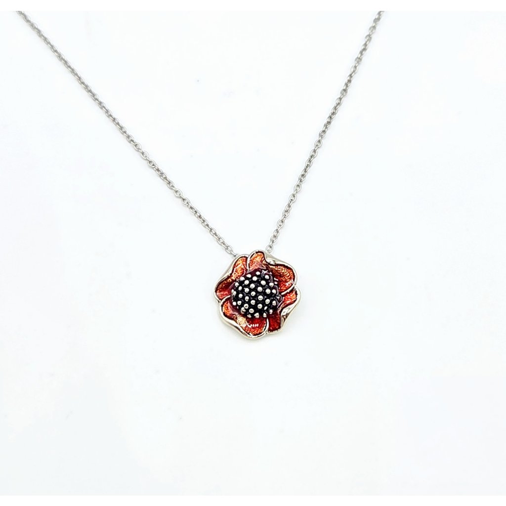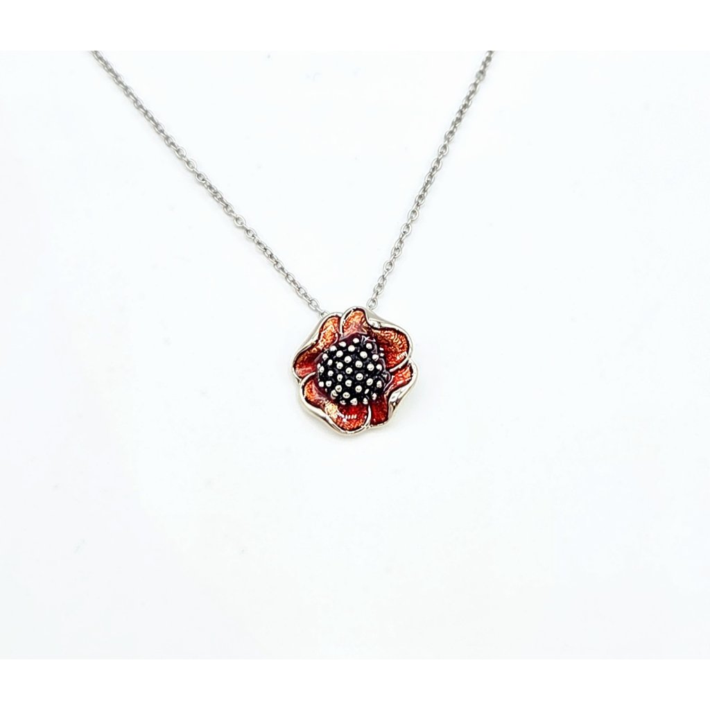 Náhrdelník Vlčí mák, je ručně malovaný šperk,který má velikost 1,4cm x 1,4 cm. Řetízek je vyroben z chirurgické oceli a měří 42 cm. Na konci řetízku naleznete také prodlužovací řetízek (adjusta) o délce 7 cm, a tak jej můžete upravit přesně podle vašich potřeb. Náhrdelník je v povrchové úpravě Platina, která mu dodává charakteristický vzhled. Tato úprava výrazně zvyšuje životnost šperku, nečerná, a navíc je hypoalergenní.Náhrdelník je výrobkem jabloneckých šperkařek, které do něj vložili svůj um a preciznost.