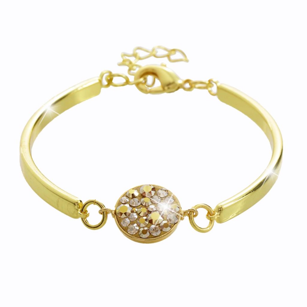 Velice elegantní náramek v barvě Gold s kolečkem vykládaným kameny Swarovski® bude perfektním doplňkem na ples nebo jakoukoli společenskou akci.