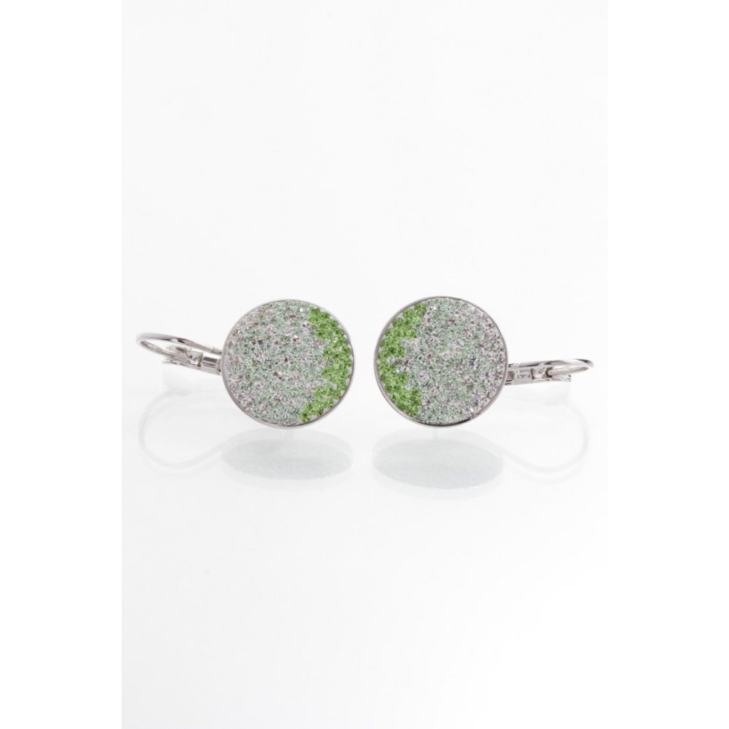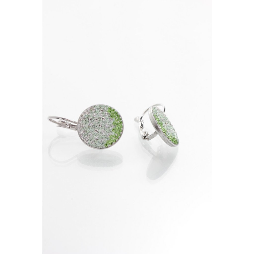 Jednoduché náušnice v designu kolečka, zdobeného kamínky Swarovski® v barvách Crystal a Peridot (zelená) s postupným přechodem.