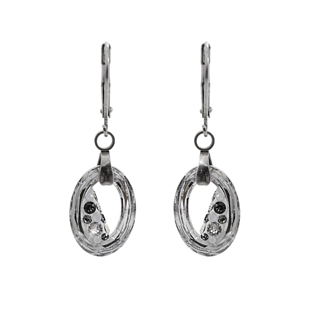 Oválné ručně vyráběné náušnice ve tvaru oválu jsou z části vyplněny kamínky Swarovski. Ozdobte se jednoduchým přesto elegantním šperkem.