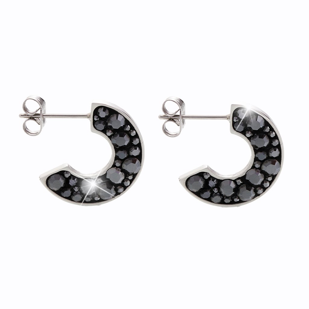 Minimalisté náušnice jsou vyrobeny z chirurgické oceli, která je vysoce odolná vůči oděru, nečerná a je antialergenní. Třpyt náušnic tvoří kamínky Swarovski v barvě Hematite. Bižuterní šperky pochází z Jablonce nad Nisou, což je jejich kolébka. Tam je šperkařky ručně vyrábí a osazují těmi nejkrásnějšími kamínky Swarovski. Věnují jim maximální pozornost a vnáší do nich život.