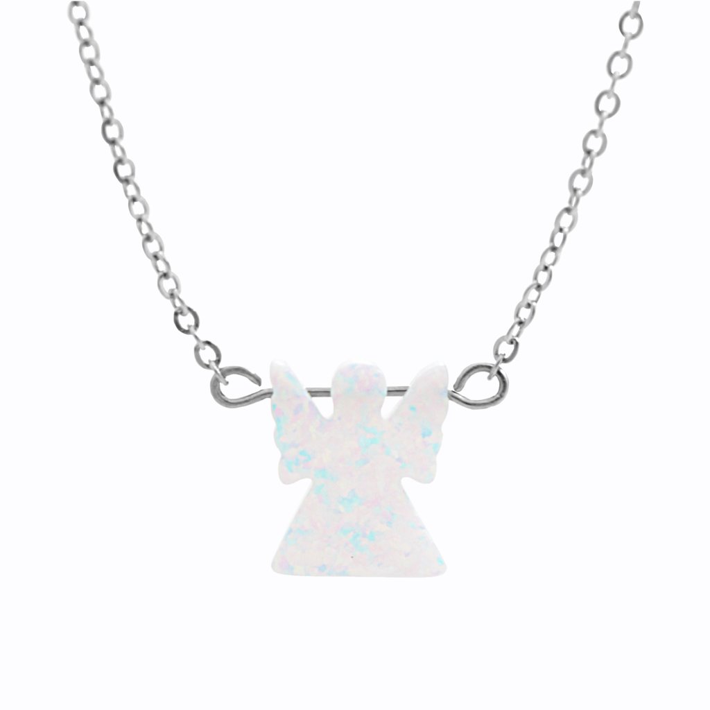 Náhrdelník Andílek opálkový je vyroben z chirurgické oceli, se syntetickým bílým opálem. Chirurgická ocel nezpůsobuje žádné nežádoucí alergie a mohou je nosit i dámy velmi citlivé na různé sloučeniny kovů. Šperky z oceli dokáží zároveň splnit požadavky na vysokou kvalitu a výdrž šperku i na originální a bezchybný vzhled.Náhrdelník je navržen a vyroben mladou jabloneckou šperkařkou, která do nich vložila svou jemnost a šperkařský um. Jedná se o ryze český výrobek.