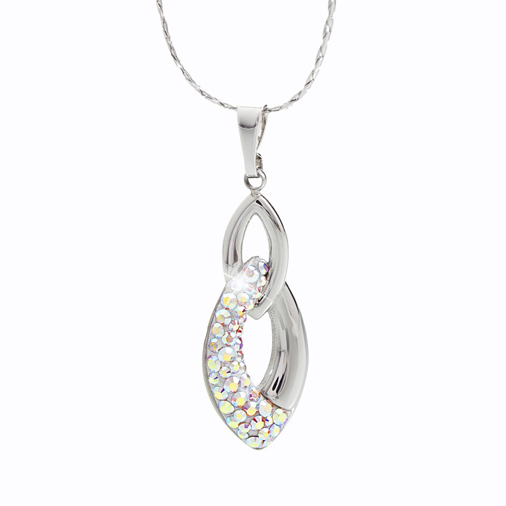 Ocelový náhrdelník Špičatý dvojitý ovál Swarovski® Aurore Boreale