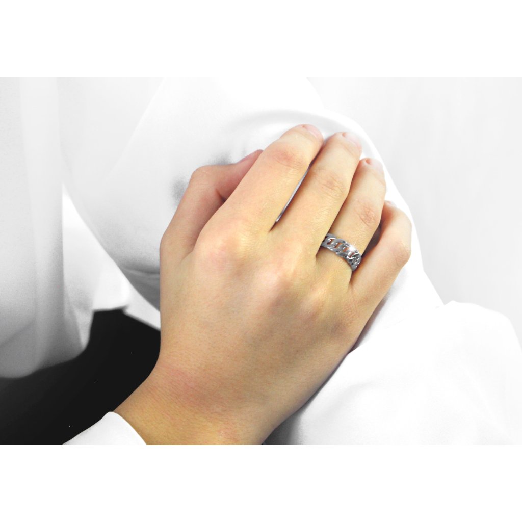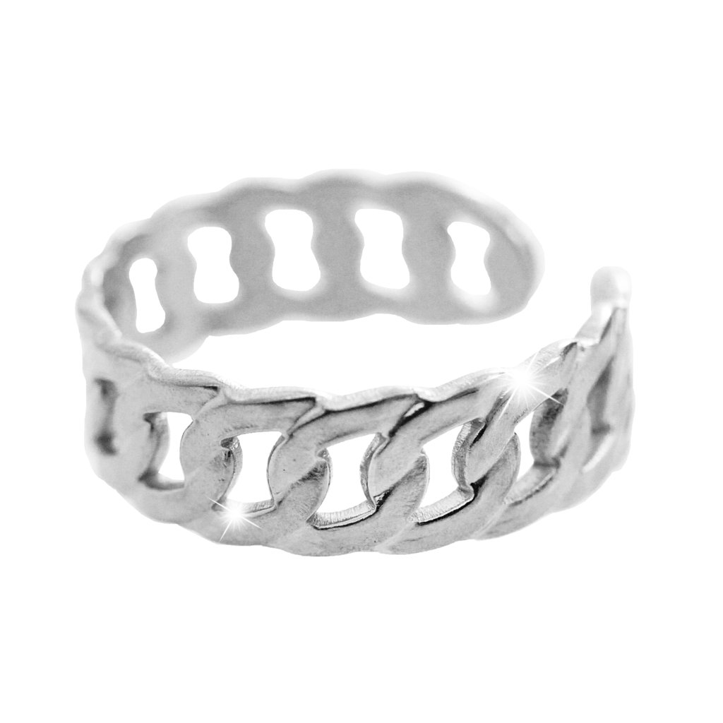 Ocelový prsten Řetěz, je moderní a výrazný šperk, který kombinuje robustnost řetězového designu s elegancí zlaté barvy.
