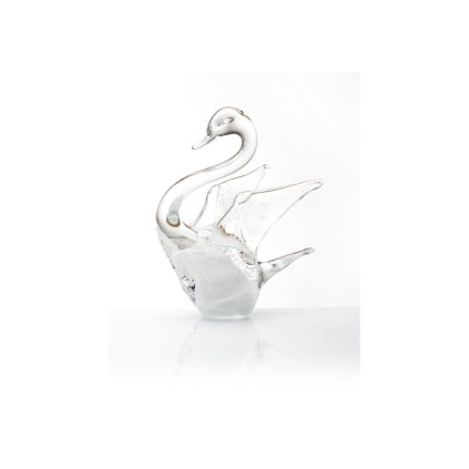 Ručně tvarovaná malá skleněná hnědo zlatá labuť, kterou lze kombinovat do páru, jsou vhodné jako svatební dar, přičemž je například lze dát na skleněný podnos a nechat vypískovat datum svatby nebo jméno nevěsty a ženicha. je hezkou dekorací do interiéru a poslouží i jako těžítko. Díky ruční výrobě se dá každý kus označit za originál.
