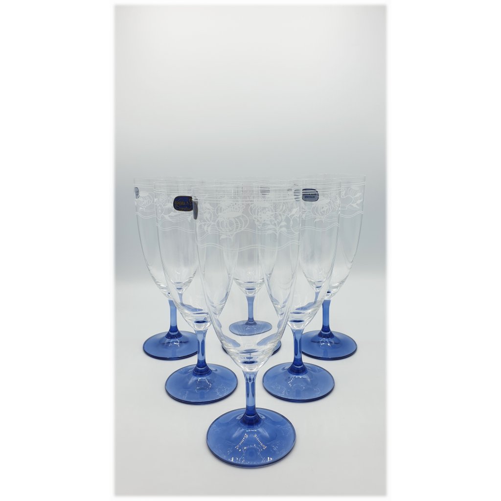 Sada šesti skleniček s klasickým, českým cibulovým designem. Tato limitovaná edice od českých sklářů ohromí každého sběratele nebo obdivovatele sklenic či každou ženu, která si chce vychutnat sklenku dobrého sektu.