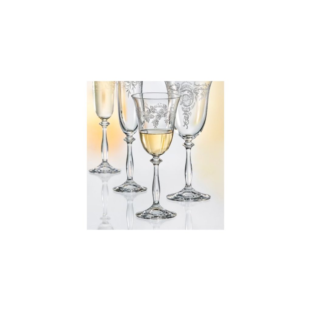 Všechny skleničky mají jiný dekor, který je rytý pantographem, ve stylu vinných sklizní.