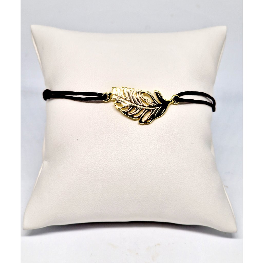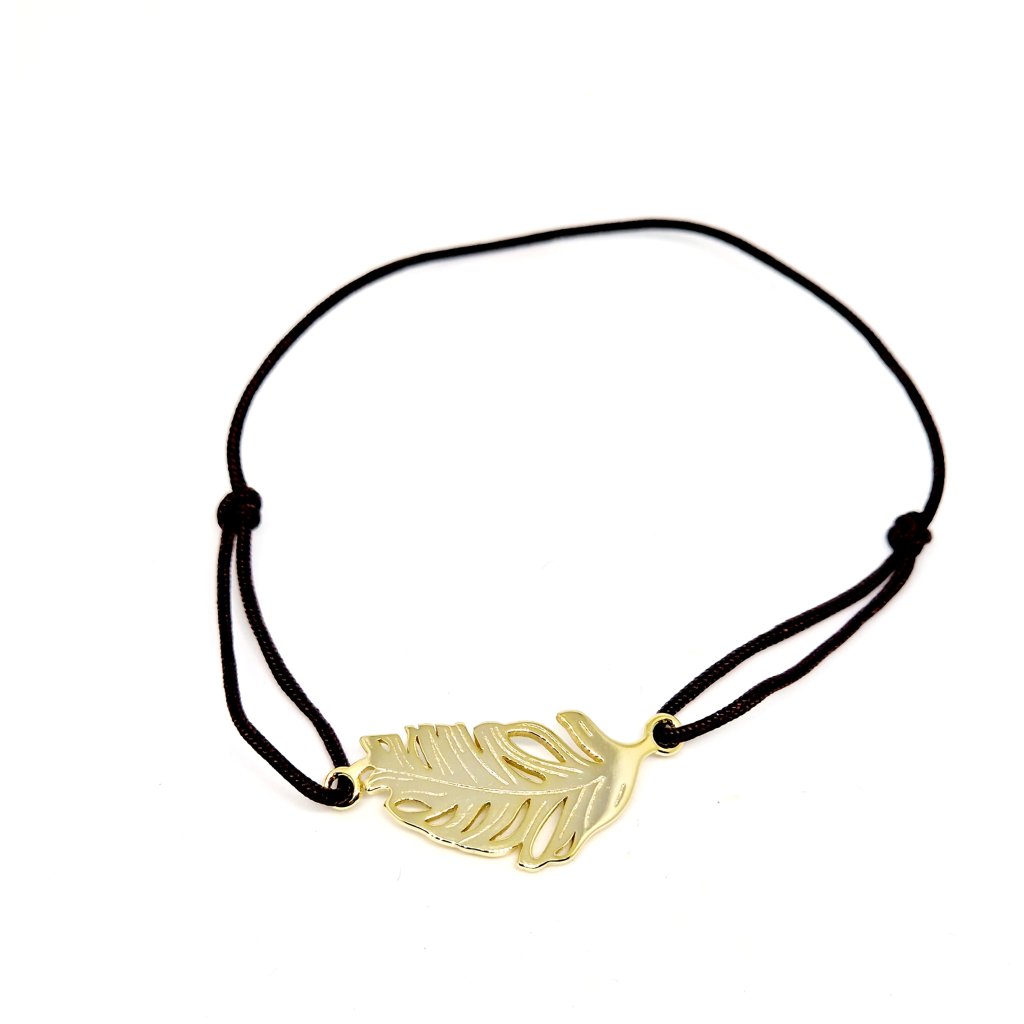 Náramek je vyroben ze šňůrky černé barvy. Peříčko je vyrobeno z puncovaného stříbra 925/1000 s povrchovou úpravou gold. Tato povrchová úprava chrání šperk před oděrem a černáním. Šňůrka je variabilní, nastavitelná velikost dle ruky.
