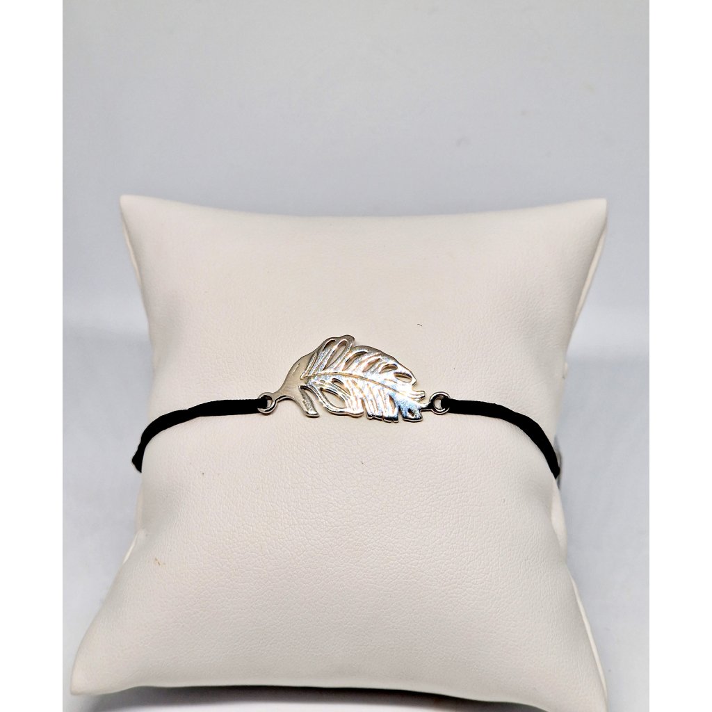 Náramek je vyroben ze šňůrky černé barvy. Peříčko je vyrobeno z puncovaného stříbra 925/1000 s povrchovou úpravou rhodium. Tato povrchová úprava chrání šperk před oděrem a černáním. Šňůrka je variabilní, nastavitelná velikost dle ruky.