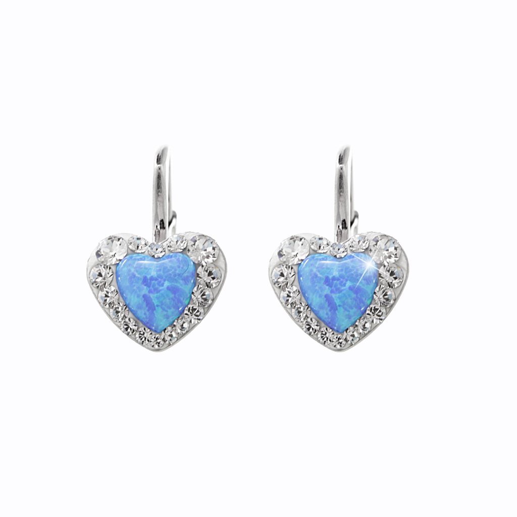 Stříbrná sada opálkové srdíčko modré se Swarovski kamínky