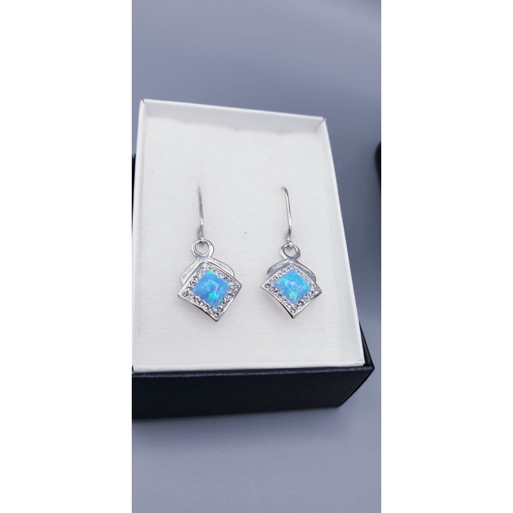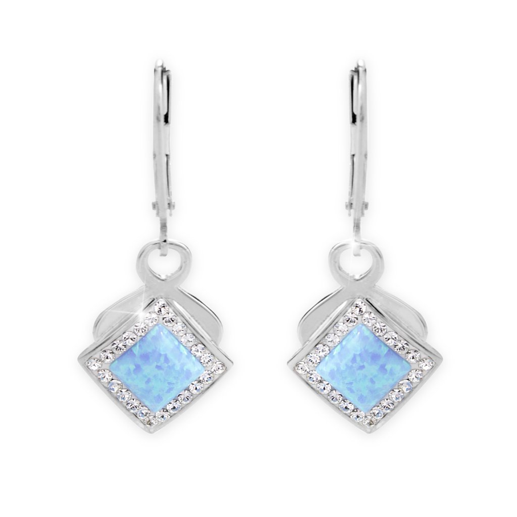 Náušničky obsahují zapínání na klapku. Na první pohled vás okouzlí ručně broušený syntetický opál. Jsou tvořeny z kvalitního puncovaného stříbra 925/1000 a jsou osázeny Swarovski crystaly.