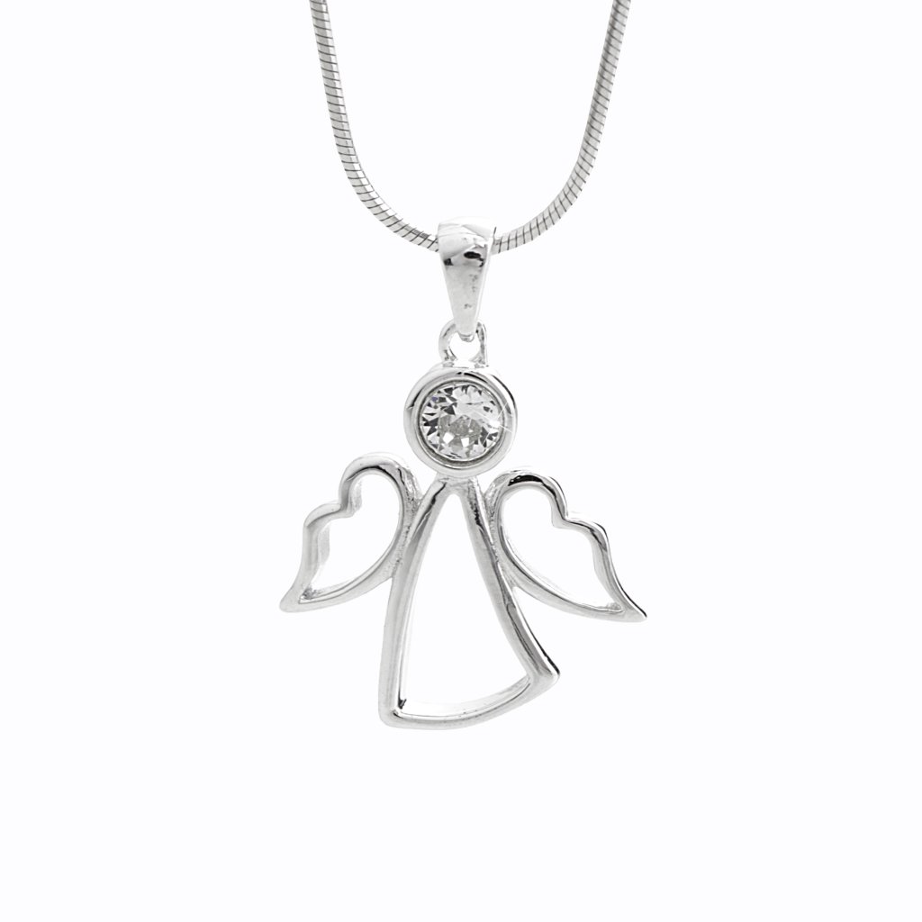 Náhrdelník je vyroben z puncovaného stříbra s povrchovou úpravou rhodium. Tato povrchová úprava je zárukou kvality, náhrdelník nečerná a je antialergenní.Andílek je osazen kamenem Swarovski, který svým leskem podrthne křehkost a krásu anděla.