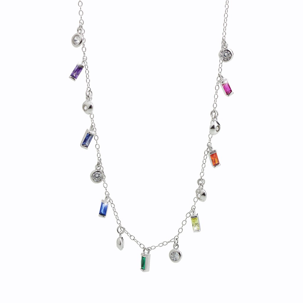 Stříbrný náhrdelník s přívěsky je vyroben z puncovaného stříbra 925/1000 s povrchovou úpravou rhodium. Tato povrchová úprava prodlužuje životnost šperku, náhrdelník nečerná a je antialergenní. Přívěsky na náhrdelníku je osázen kubickými zirkony.Kubické zirkony jsou dokonalou alternativou místo pravého diamantu.Je dostupná v různých barevných provedení a její cena je oproti pravému kameni mizivá. Náhrdelník je dodán v dárkové krabičce.