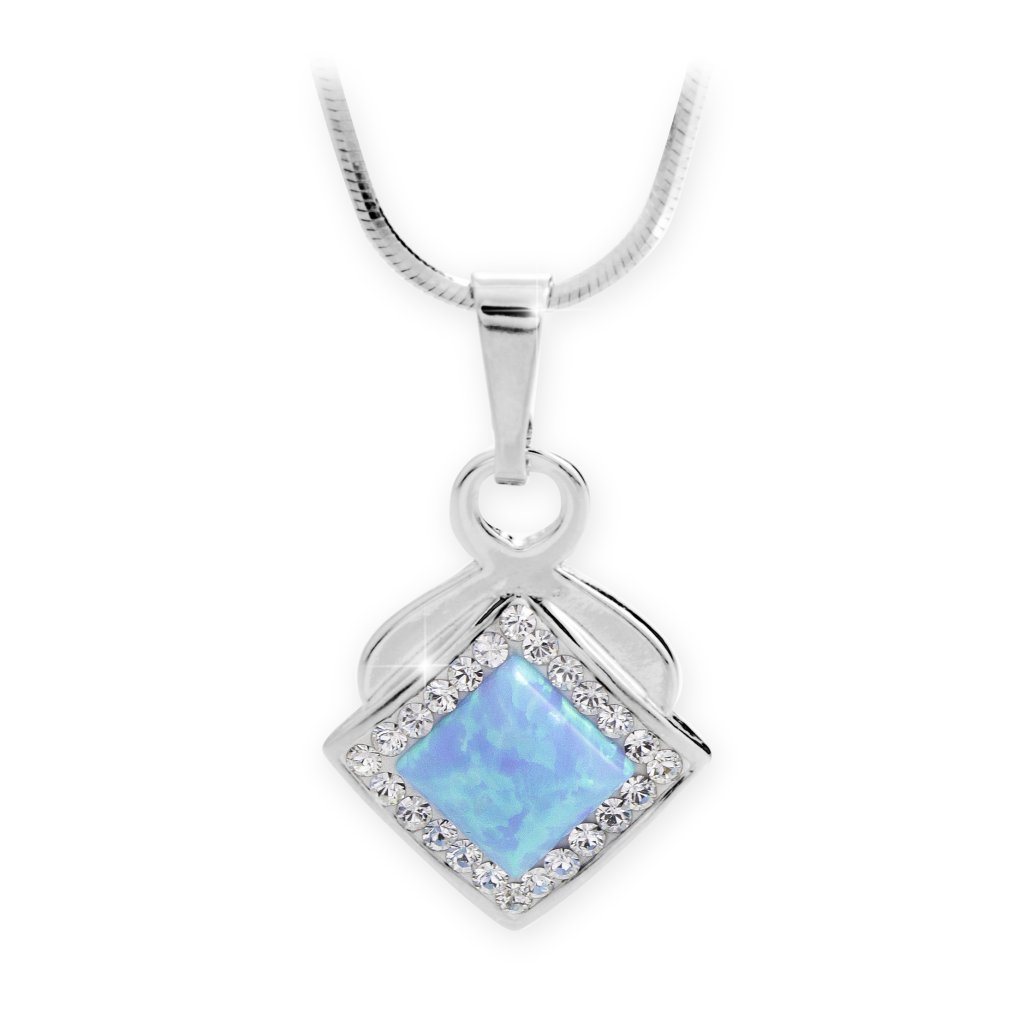 Stříbrný náhrdelník s Opálem a křišťálky Swarovski Modrý