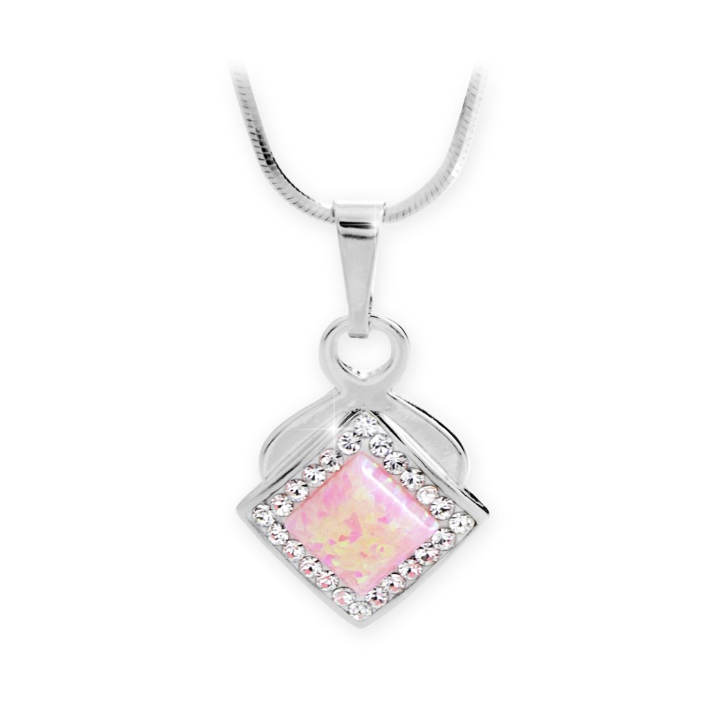 Stříbrný náhrdelník s Opálem a křišťálky Swarovski Růžový