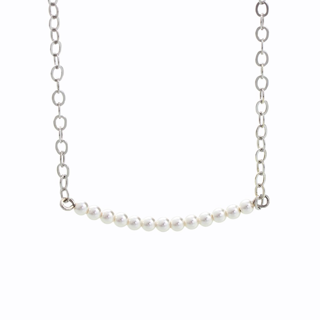 Stříbrný náhrdelník s perličkami je nádherná a nestárnoucí klasika v moderním provedení. Tento náhrdelník můžete doplnit o náramek.