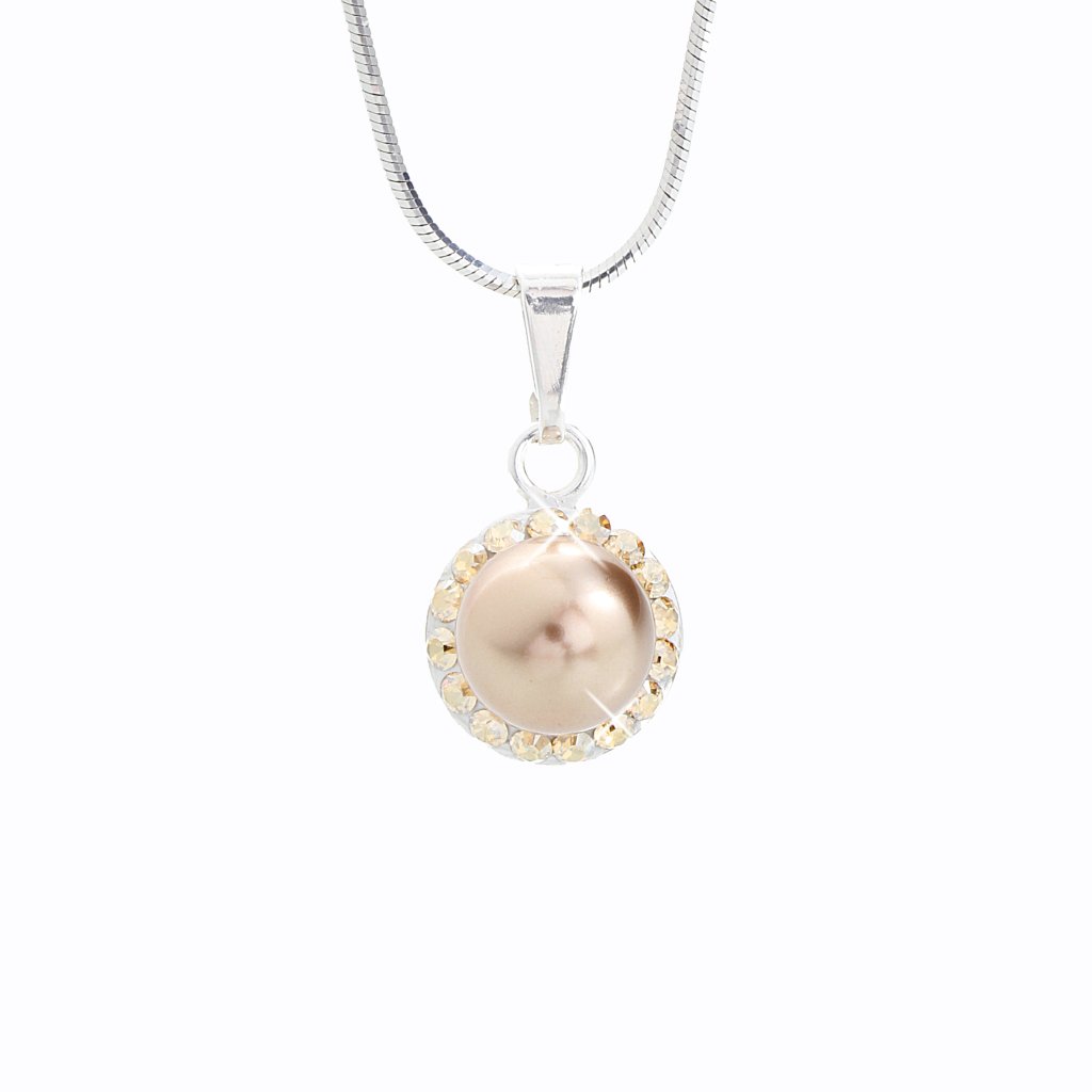 Stříbrný náhrdelník s půlperlou a kameny Swarovski® components brown