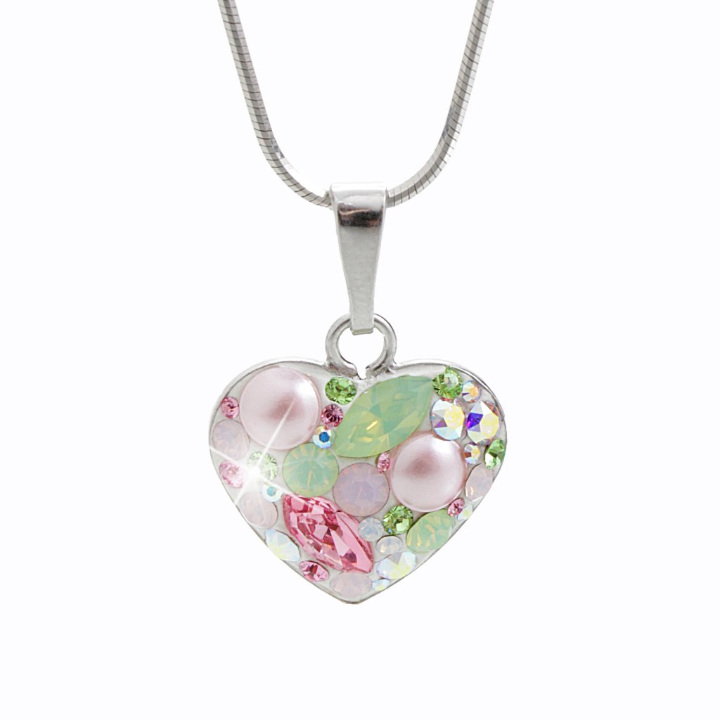 Stříbrný náhrdelník Srdce osázený kameny Swarovski multi