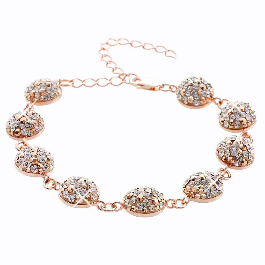 Stříbrný náramek s křišťálky Swarovski components Round rosa gold. Kvalitní stříbro (925/1000), často rhodiované, což zajišťuje odolnost proti zčernání a dlouhotrvající lesk.Kulaté krystaly s brilantním brusovým efektem, známé svou mimořádnou kvalitou a třpytem. Povrchová úprava rhodiem dodává šperku vysoký lesk, pevnost a odolnost vůči zčernání stříbra. Vhodný dárek pro každou ženu a dívku.Skvělý doplněk pro každodenní outfit, stejně jako pro večerní události nebo svatební oslavy.