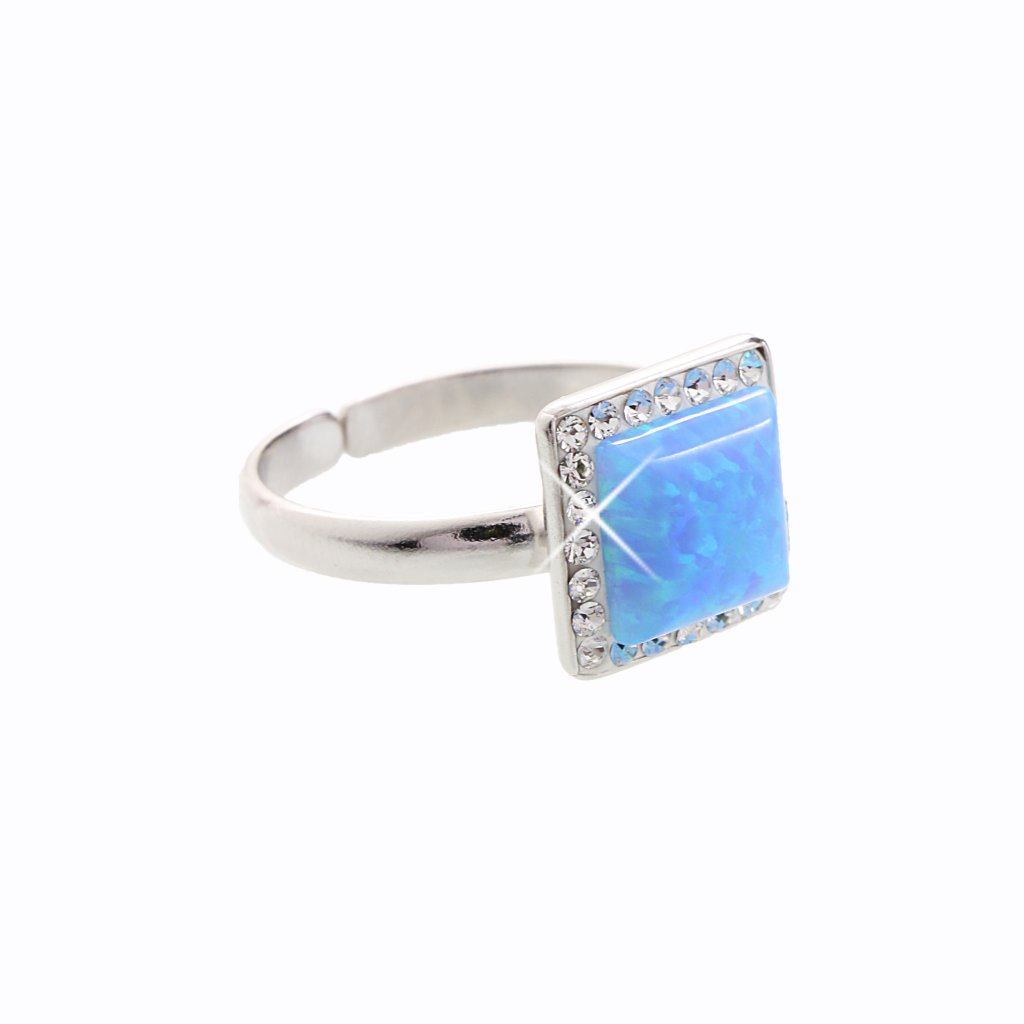 Stříbrný prsten Kostka s opálem blue a křišťálky Swarovski