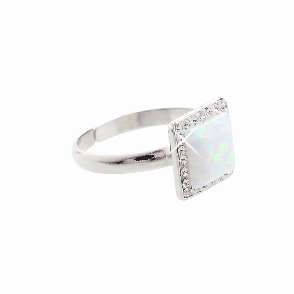 Stříbrný prsten Kostka s opálem white a křišťálky Swarovski