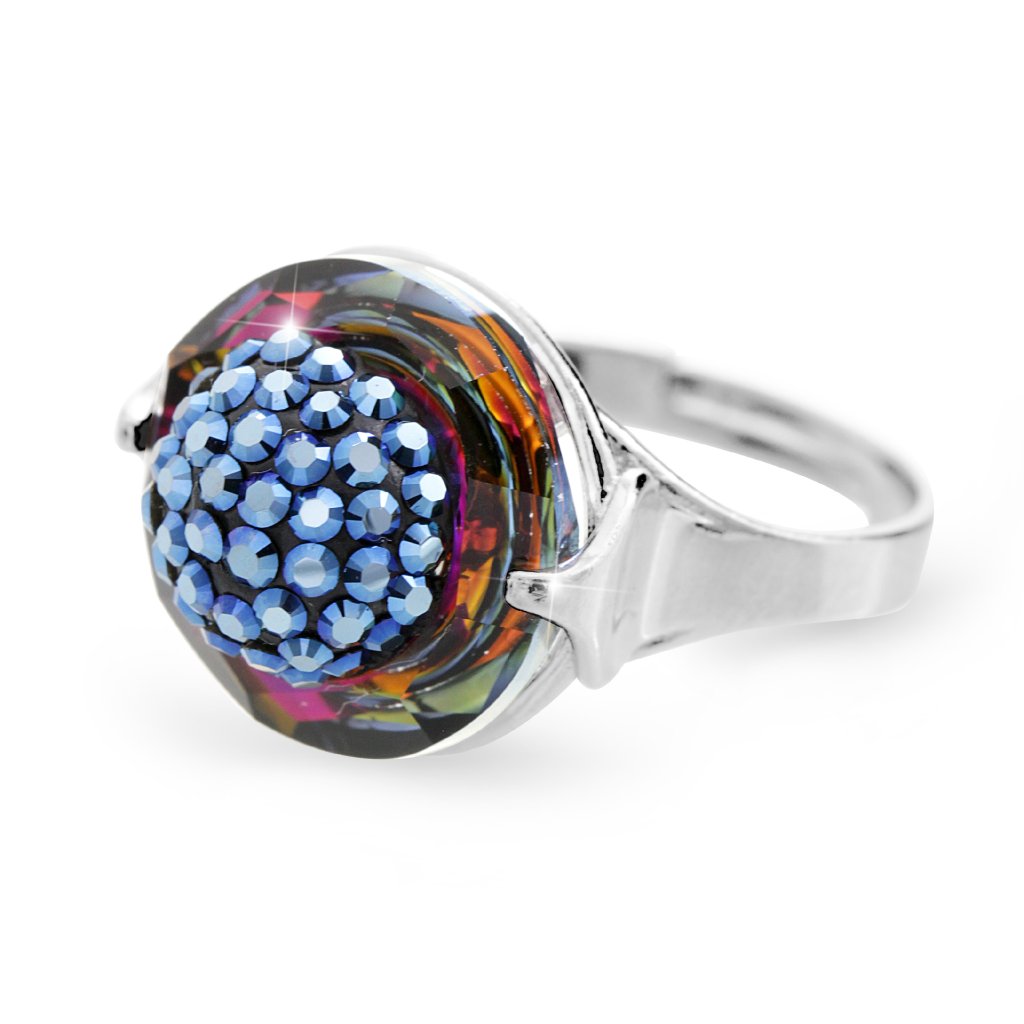 Stříbrný prsten půlkulička s kameny Swarovski Modrý duhový