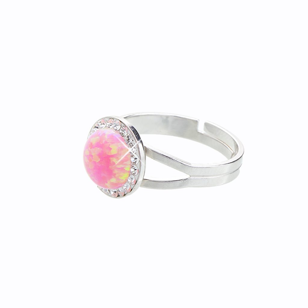 Stříbrný prsten s opálem a křišťálky Swarovski® components Opal Round rosa