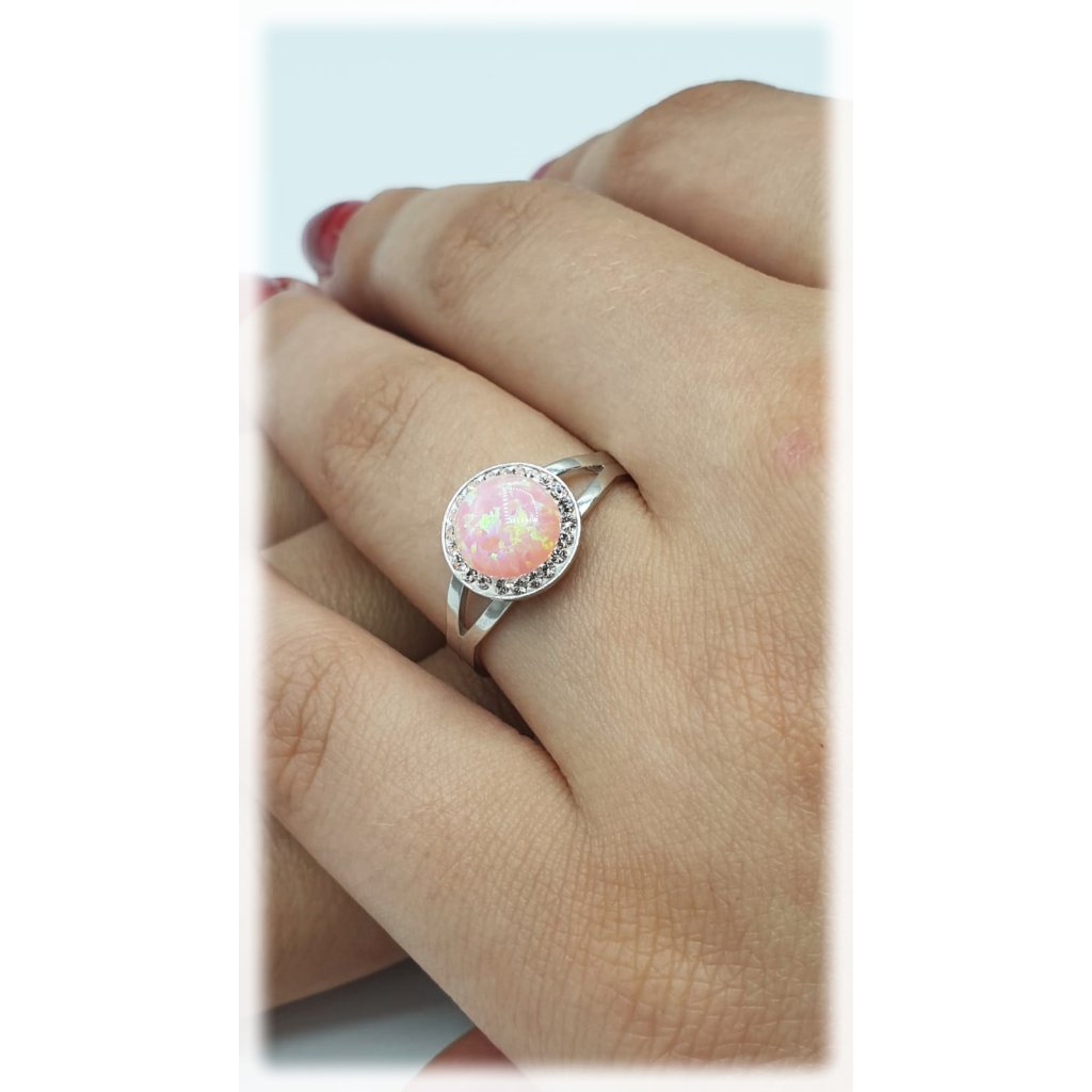 Stříbrný prsten s opálem a křišťálky Swarovski® components Opal Round rosa