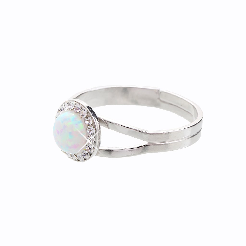 Stříbrný prsten s opálem white a křišťálky Swarovski