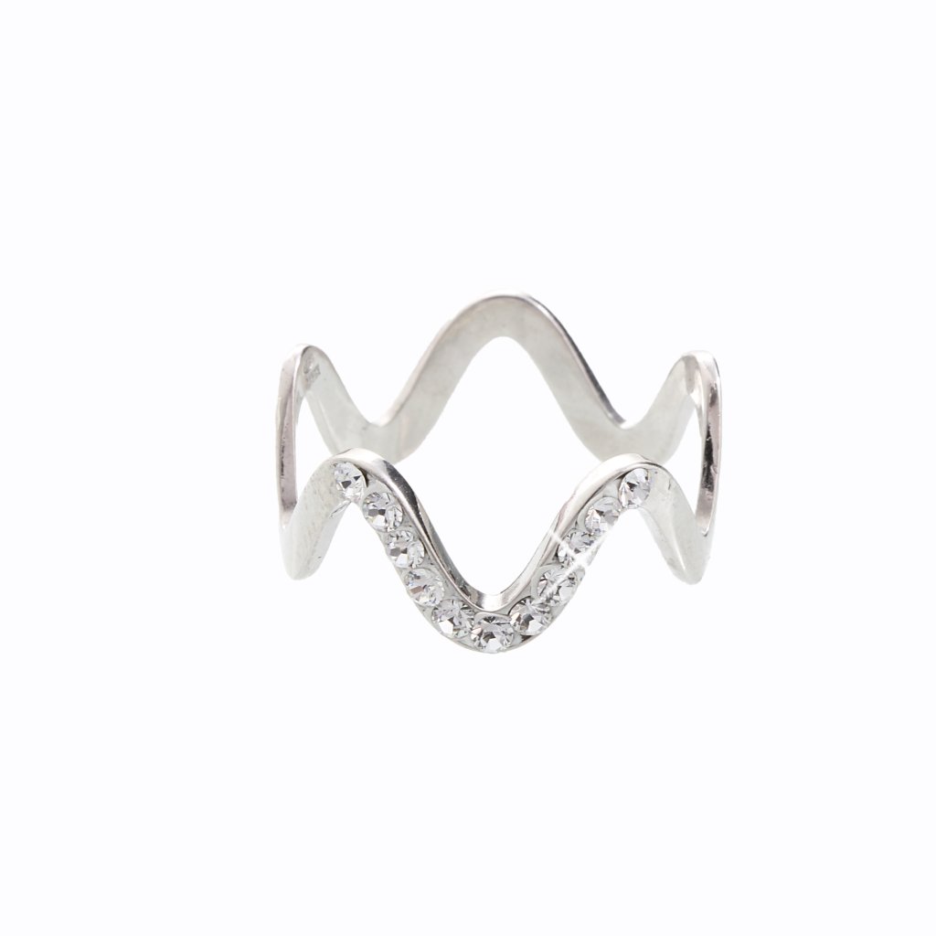 Stříbrný prsten vlnka je moderním a zajímavým doplňkem. Lze ho nosit samostatně, nebo jako doplňkový prsten. Kameny Swarovski, kterými je osázen mu dodává krásu a lesk.