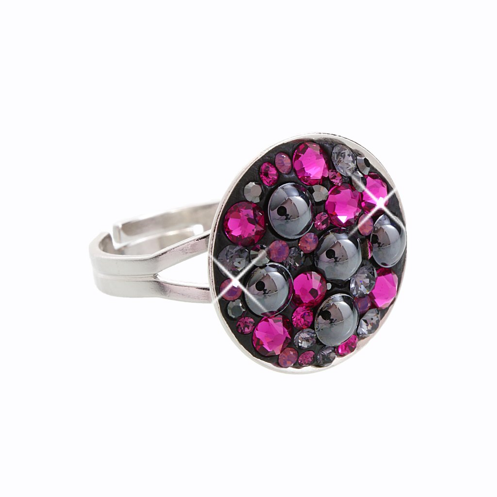 Stříbrný prstýnek Swarovski components Round fuchsia