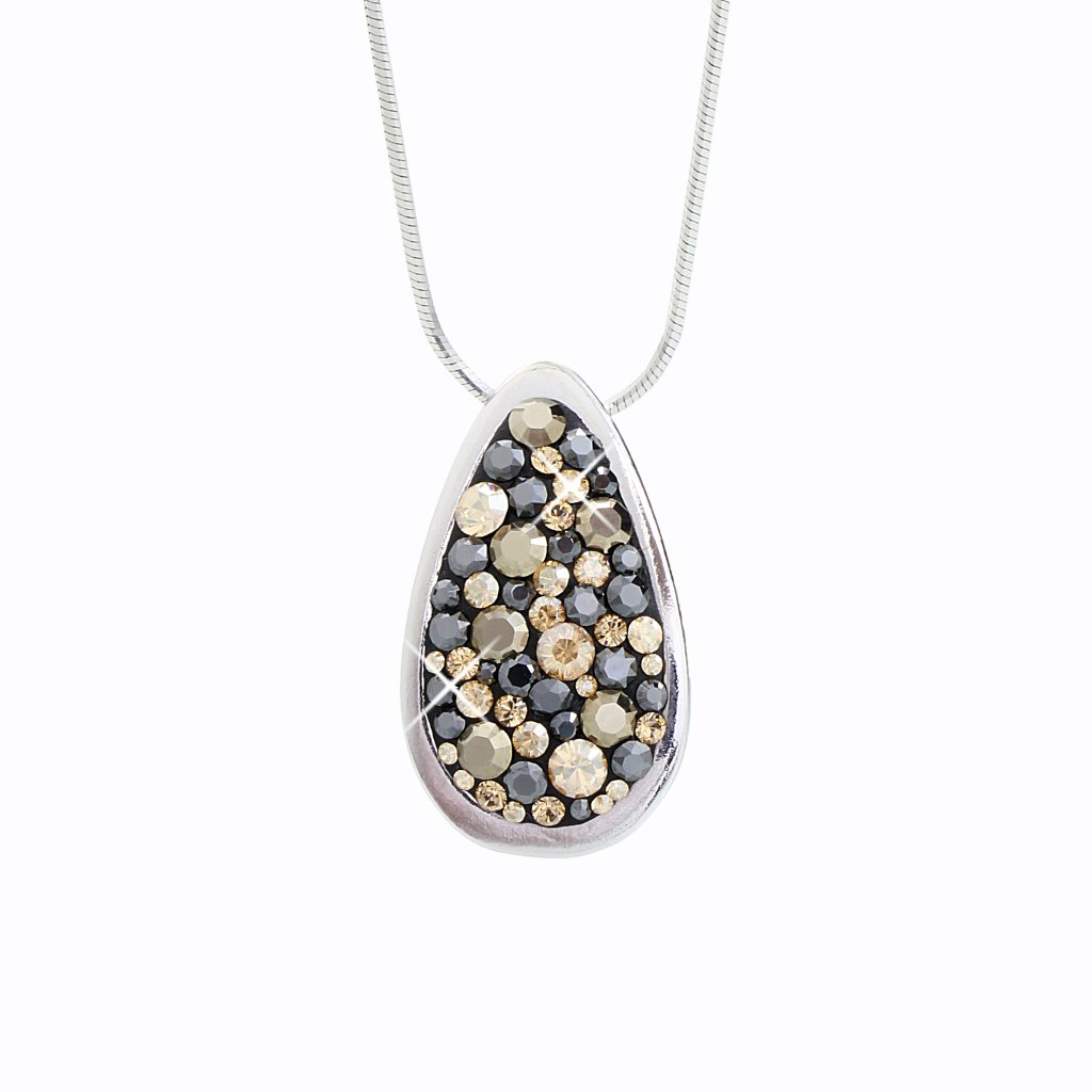 Stříbrný řetízek s přívěskem ve tvaru kapky zdobený krystaly Swarovski jet mix,může být krásným a elegantním doplňkem. Tyto šperky se vyznačují výraznou brilancí krystalů a kvalitním zpracováním.