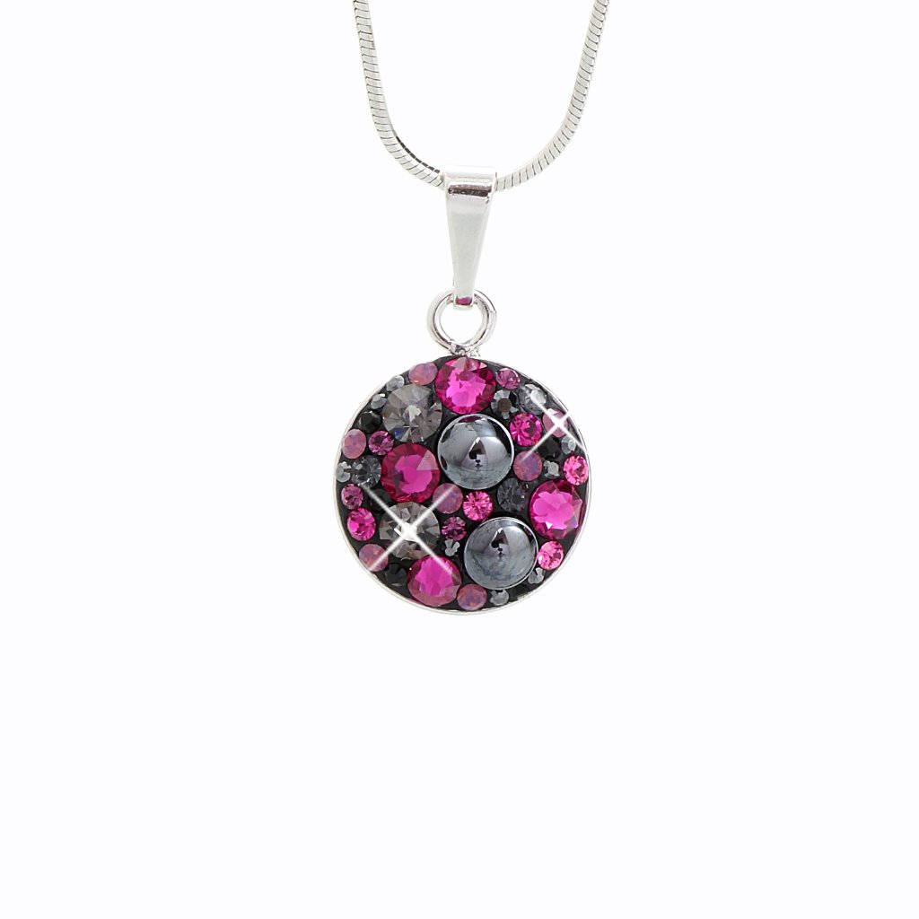 Stříbrný řetízek s přívěskem Swarovski components Round fuchsia