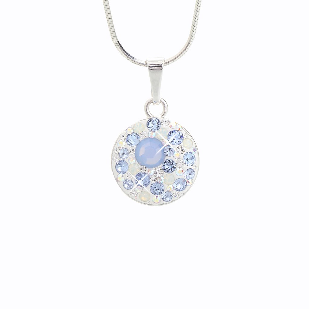 Stříbrný řetízek s přívěskem Swarovski components Round montana. Stříbro (925/1000), často rhodiované pro větší odolnost vůči zčernání a zachování lesku. Povrchová úprava rhodiem dodává šperku vysoký lesk, pevnost a odolnost vůči zčernání stříbra. Kulatý krystal Swarovski v barevném provedení montana, který nabízí kombinaci jemných pastelových odstínů a duhových efektů.Vhodný dárek pro každou ženu a dívku.